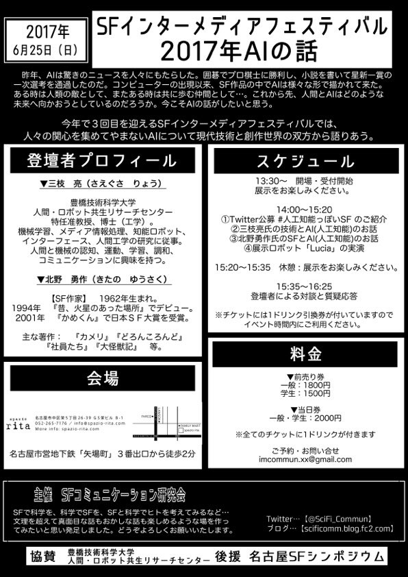 在庫切れを起こしていた人工知能SF事典と工学系SF事典ですが、こちらのイベントで頒布します。ご興味あればぜひ!事典についてはこちら http://361deg.info/books/ https://twitter.com/scifi_commun/status/865784694742294528 …