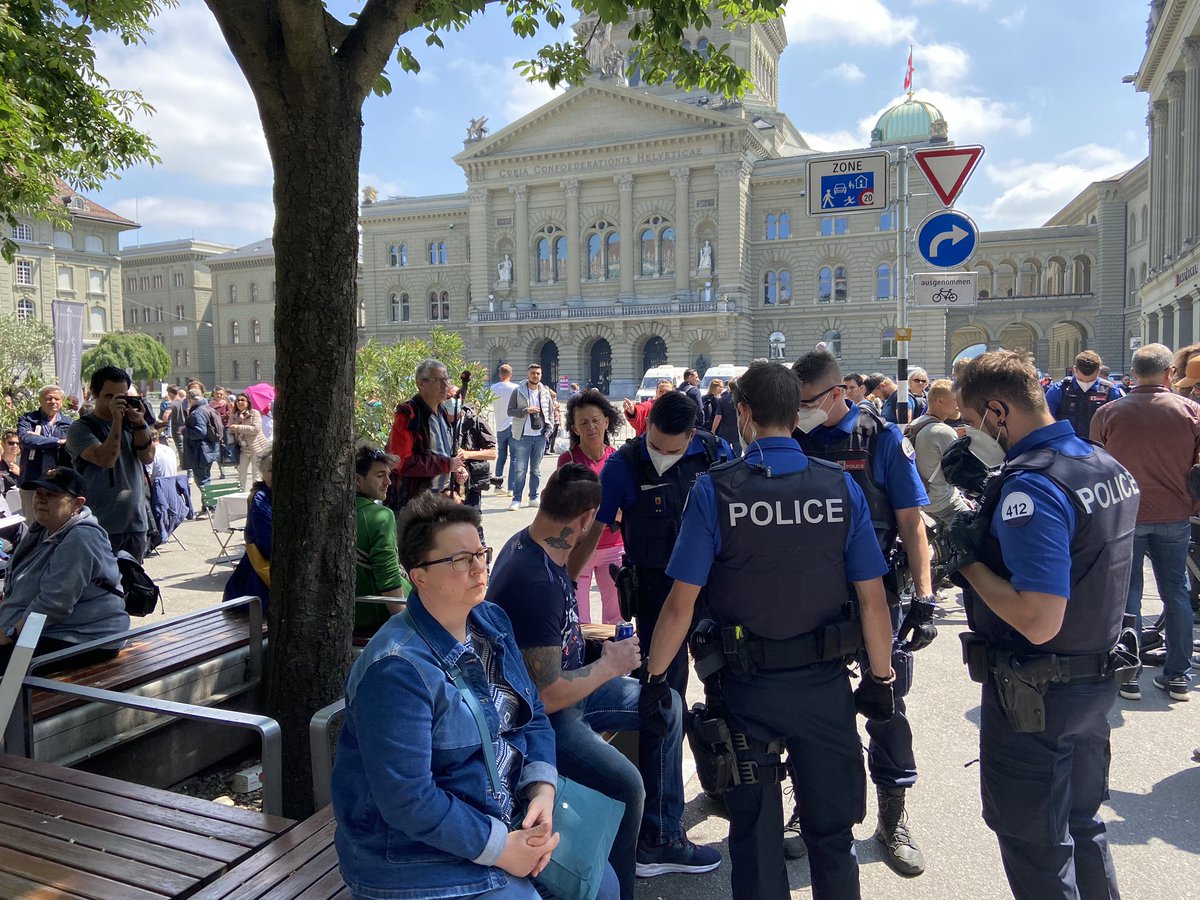 Demo vor Bundesplatz hat sich weitgehend aufgelöst. Einzele werden abgeführt. @watson_newspic.twitter.com/O1VNQF8QDa
