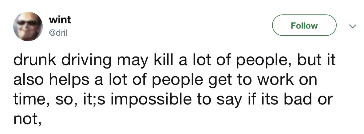 i drove to work today repeatedly saying "men are cancelled" and "this ain't it chief" to myself in Anton Chigurh's voice. i think i'm having a stroke