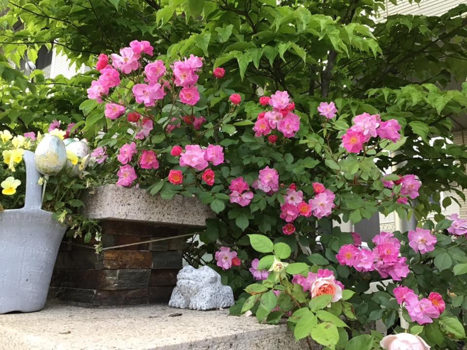 今日は実家に子供達を預けてお仕事。 実家にあげたバラちゃんたち、まだキレイに咲いてる〜。 やっぱりこの二本、強い