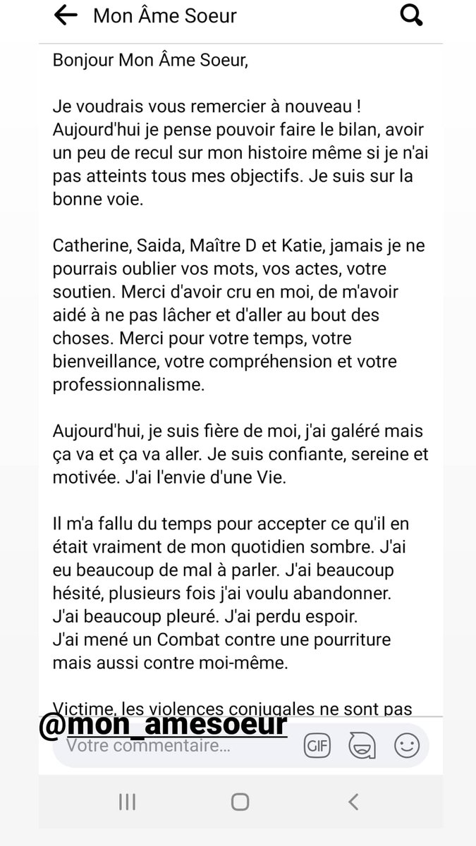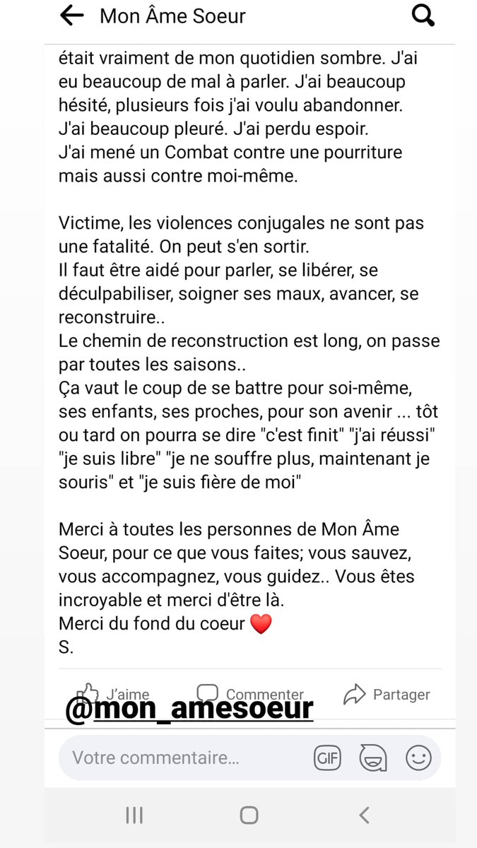 #Survivante pr sa force & sa déterminat° Bravo & Merci à l'#association#MonAmeSoeur pr leur act° leur dévouement & leur travail de tt les jrs pr aider secourir#victimes de#ViolencesConjugales@Prefet95@valdoise@NaimaMoutchou@1ElisaMoreno@Gerald_SARIZAFYpic.twitter.com/FjHI6pz8mz