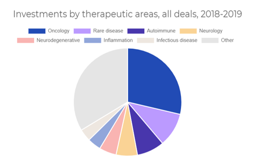 Cancer still dominates, but neuro + neurodegenerative is the second biggest category. Rare disease is 3rd.pic.twitter.com/4WYZD6A0iW
