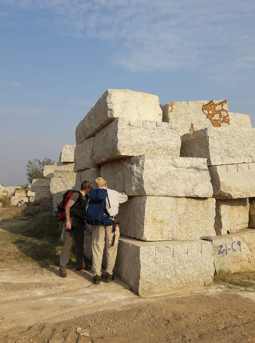 In the field in Kirivong, Cambodia looking at pegmatites - it's always great to find a quarry!