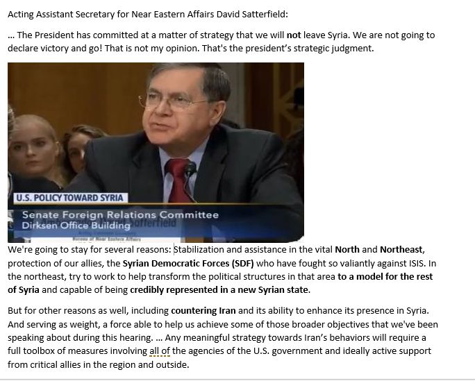 Important Statement from the acting Assistant Secretary for Near Eastern Affairs David Satterfield on U.S. Policy in Syria After ISIS #SDF #YPG #Rojava https://www.c-span.org/video/?439411-1/foreign-relations-panel-explores-us-policy-post-isis-syria …pic.twitter.com/JBO3yI3tE9