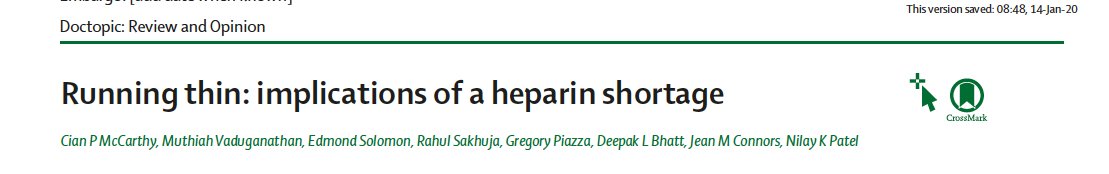 @TheLancet, we discuss current concerns regarding the supply of heparin and implications+contingencies in the event of a critical shortage.@connors_md@mvaduganathan@NilayPatelMD@DLBHATTMD@RahulSakhujaMD@MGHHeartHealth 1/ https://www.thelancet.com/journals/lancet/article/PIIS0140-6736(19)33135-6/fulltext …pic.twitter.com/Yg0roOGySR