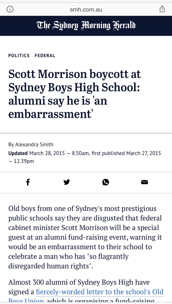 But did the alumni boycott Adam, like nearly 300 of the Alumni of Scott Morrison's school did?