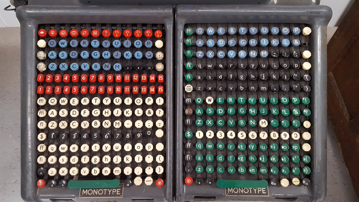 Two Monotype keyboards. Did they even have a standard layout? They were undated, but the second one was positioned next to a Monotype phototypesetter.pic.twitter.com/PGfL3blspR