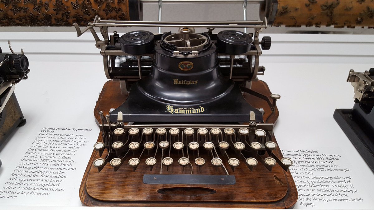 Hammond Multiplex, 1913. Instead of typebars, it had interchangeable semi-circular shuttles with the characters, and allowed for more characters to be typed.pic.twitter.com/5UMr6VwjI4
