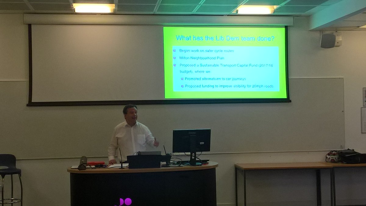 @darrensandersld presents on behalf of himself and @geraldvjuk the @portsmouthld plan for cycling at the @PompeyBUG #Election2017 hustings.pic.twitter.com/nqB7I9di8X