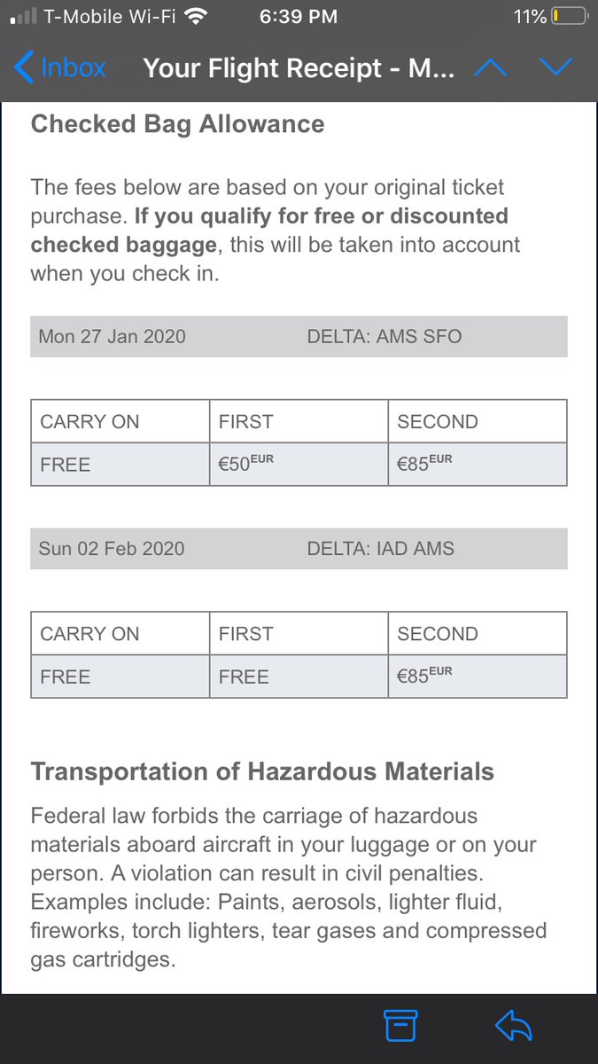 I cannot believe the arguments I am getting! Really?! I buy Delta, pay the agreed price, but too bad the flight is operated by KLM? Your purchase confirmation clearly shows the bag allowance.pic.twitter.com/eqYEFO7RIw