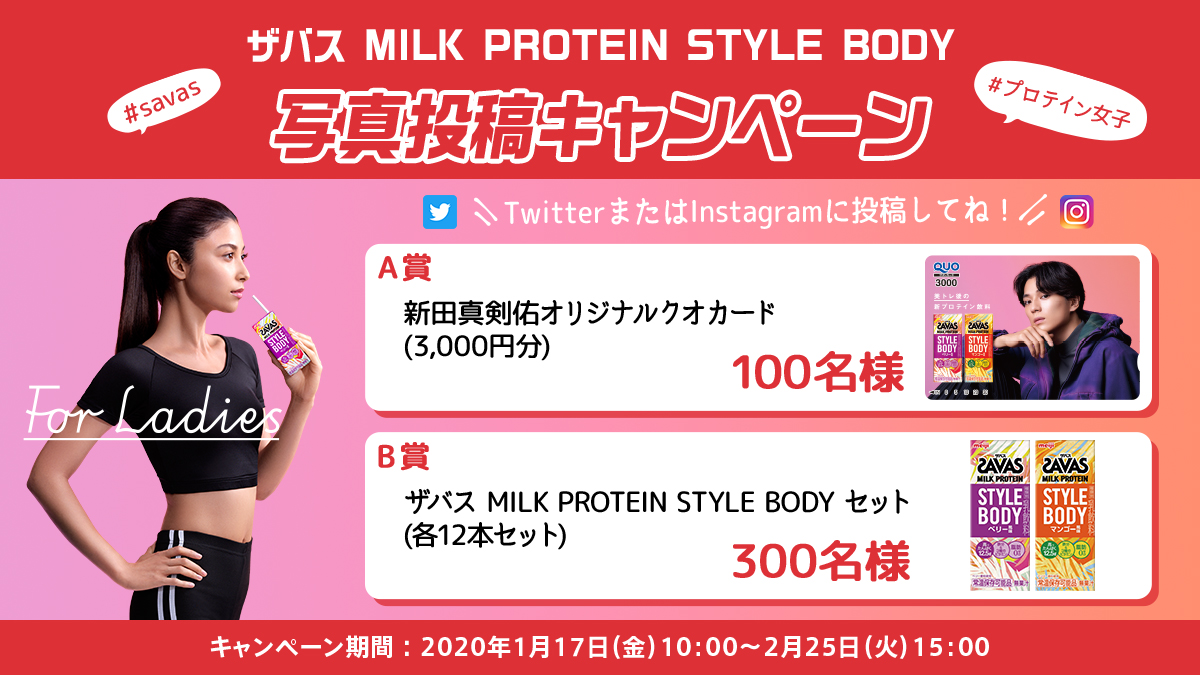 @my_savas_jpをフォロー [2]ザバス MILK PROTEIN STYLE BODYを飲みたいシーンの写真を撮影、#savas#プロテイン女子 をつけて投稿! 抽選で新田真剣佑オリジナルクオカードや商品セットが当たる! http://meiji.co.jp/sports/savas/cmp/open200117/ …pic.twitter.com/PSTsGocXyk