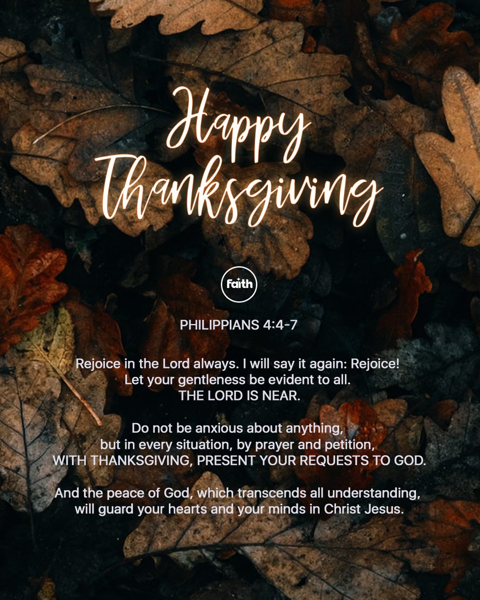 HAPPY THANKSGIVING Faith Family! Philippians 4:4-7