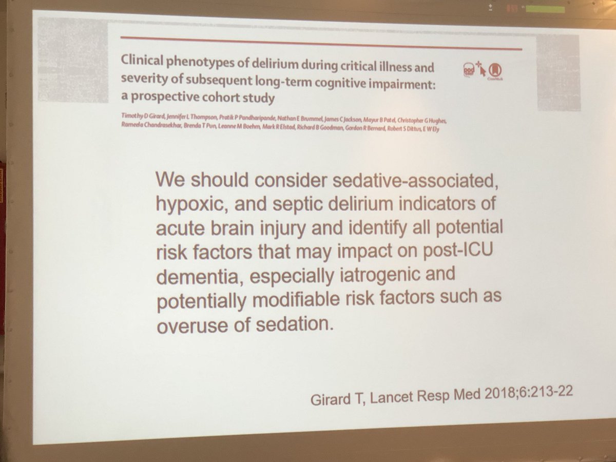 Updates knowledge on long term risks from sedative associated delirium from https://www.ncbi.nlm.nih.gov/pubmed/24088092 https://twitter.com/Paul_Wischmeyer/status/976469422884999169 …