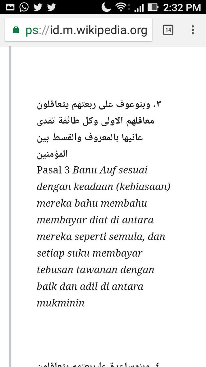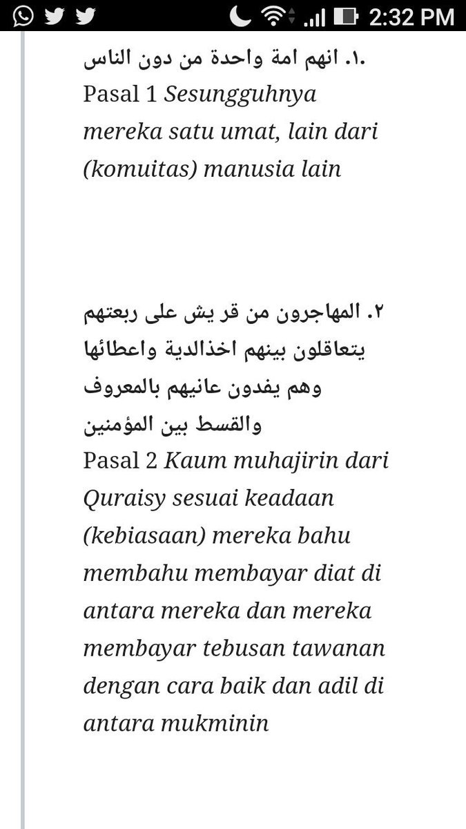 Bahkan Nabi Muhammad SAW sangat menghormati kebiasaan tiap2 suku bangsa yang ada di Madinah , dibuktikan dengan dituangkannya pasal2 yang berisi keharusan mengikuti kebiasaan tiap2 suku bangsa itu dalam piagam madinah ! Kalau Nabi saja Menghormati tradisi kenapa kita tidak ?pic.twitter.com/NLvvtK78Q6