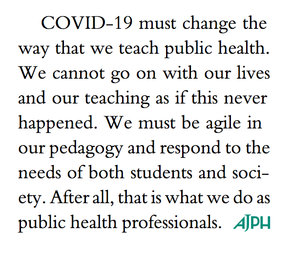@AMJPublicHealth on teaching public health after#COVID19. Looking forward to engaging with others on this topic.https://twitter.com/AMJPublicHealth/status/1261023910394503169 …