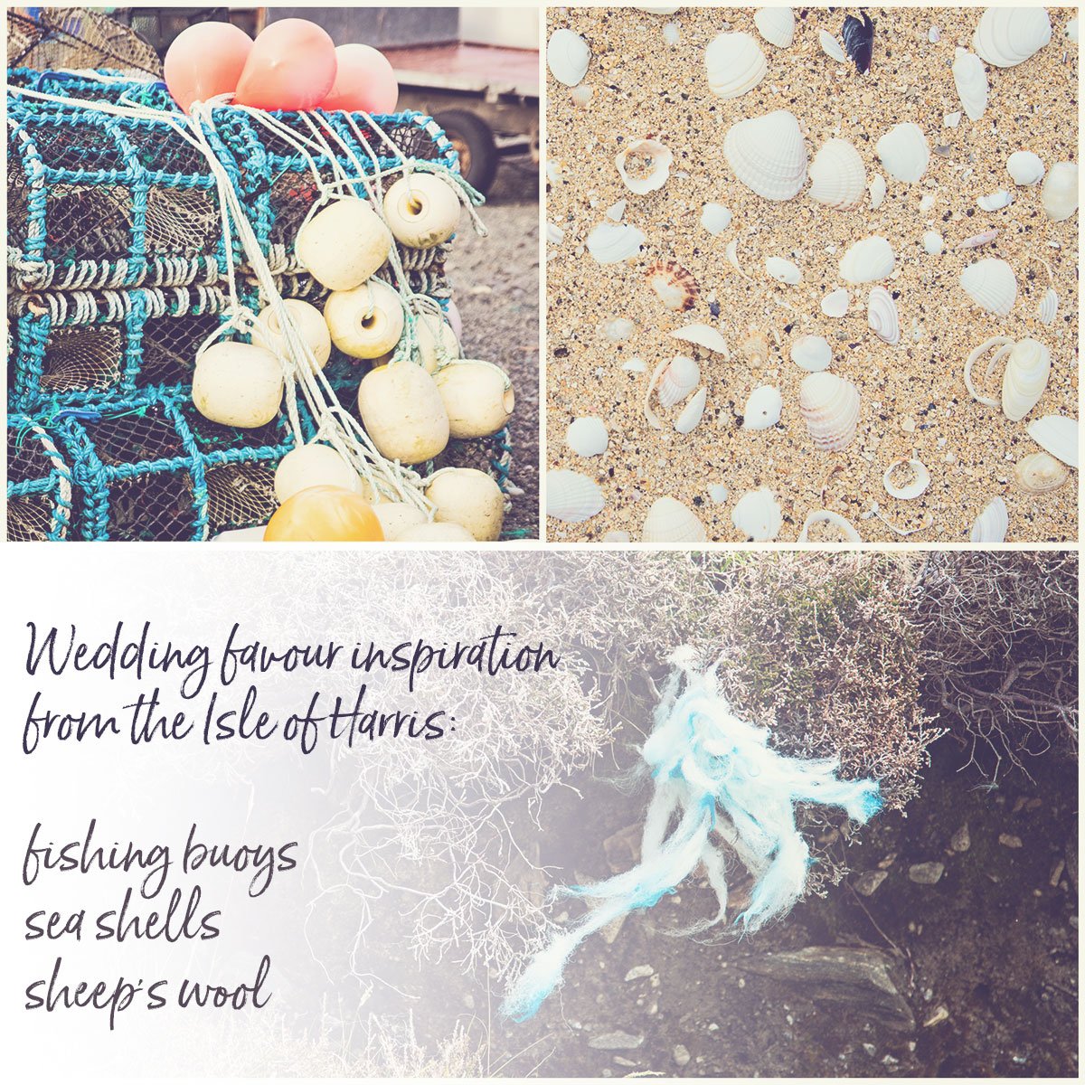 #weddingfavours . Our wedding is on the Isle of Harris this year, and the things that you come across there are the fishing buoys, lots of shells on the beach, and there is just sheep wool everywhere!#weddinginspirationpic.twitter.com/GPogc3aXdJ