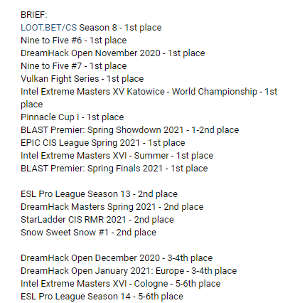 28.09.20 Groove head coach 01.10.21 15 Grand Finals 11 gold medals TOP 1 HLTV, ESL WR, CSPPA, Blast PWL (before Cologne) EVERY S-A tornament (at least po) 4 players from acd Groove also Sports director and NO nomination for coach of the year cause "your reply"