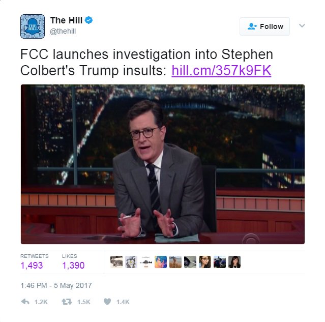 people are freaking out about this Colbert thing without realizing that *every* complaint to the FCC launches an investigationpic.twitter.com/E4HQTyS6cb