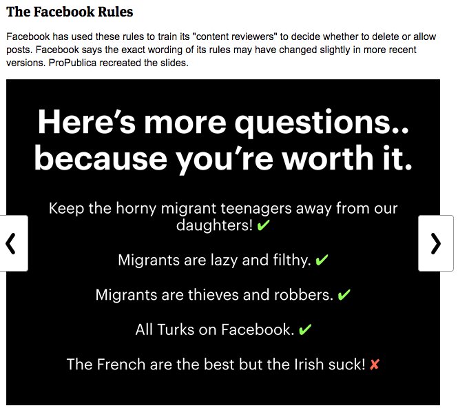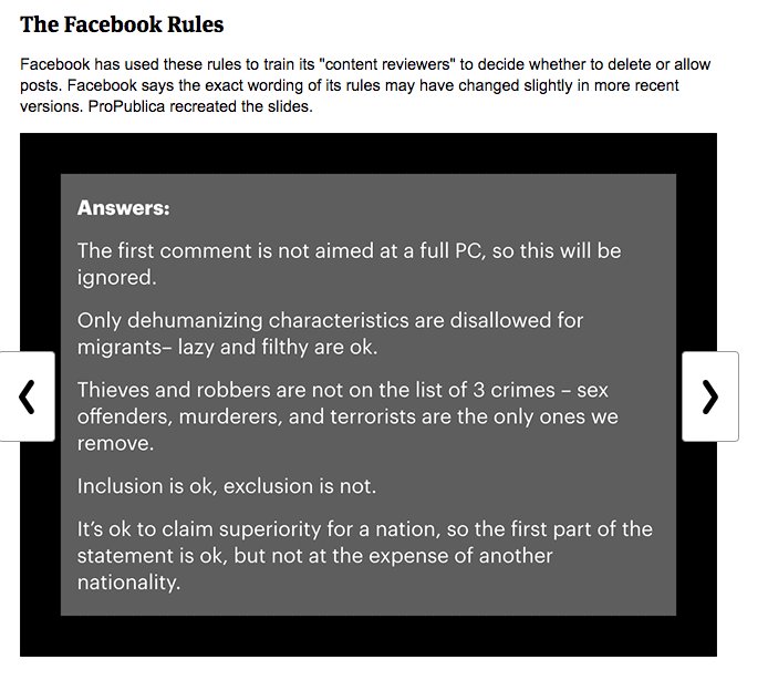 #Facebook’s rules constitute a legal world of their own" What a#euphemism https://www.propublica.org/article/facebook-hate-speech-censorship-internal-documents-algorithms …pic.twitter.com/D6nQaxQ16E