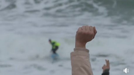 Miarritzeko kostan, txaleko horia soinean duen surflariaren bideoak