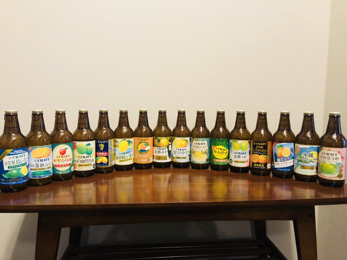 こつこつ集めてきた宝クラフト。あと、北限のゆず、という東北のやつがあればコンプリートです 色々手を尽くしていますが、入手できず、どなたか一本お待ちでないでしょうか?箱でなら通販で買えますが、買いすぎて無駄にしたくないんです お礼にこちらからは二本出します。お持ちの方、ご連絡下さいpic.twitter.com/qR0WRSaeJF