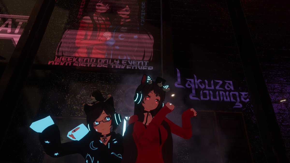 Neko nights was a lot of fun, vrchat and steam vr technical issues aside it was another successful event❤️ I want to hang out with drunk @nanoade_ more often. Tonight is a special estate night event that is going to be held at the Lakuza Lounge ❤️pic.twitter.com/uzbmGQBYcJ