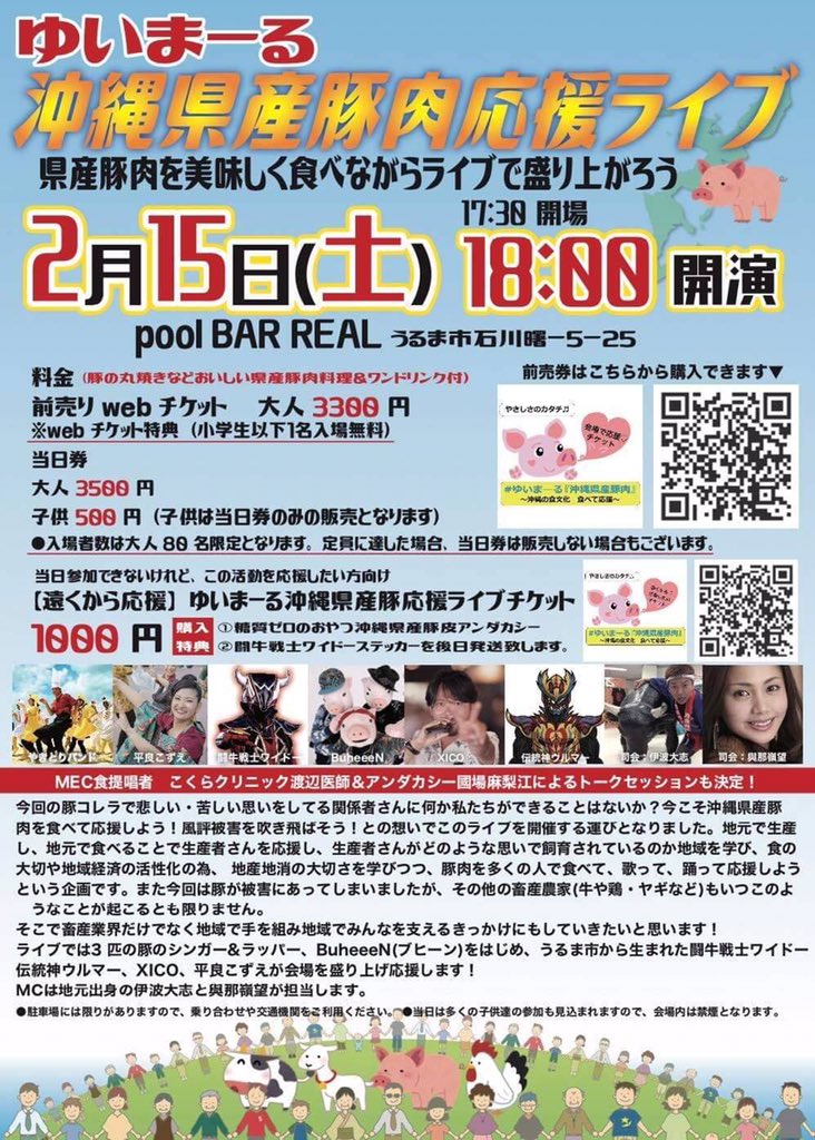 2/15(土) 沖縄県産豚肉応援ライブをお手伝いしてきます
