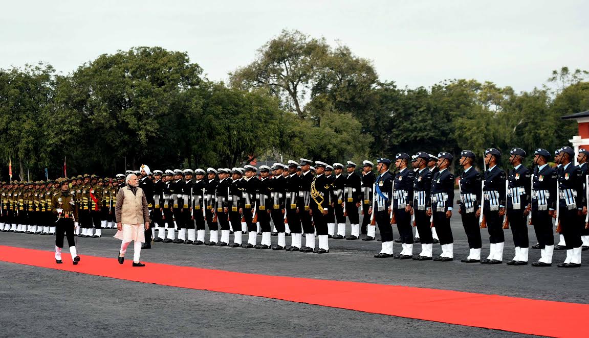 PM inspects Tri-services 'guard of honour' at IMA, Dehradun, ahead of Combined Commanders Conference.pic.twitter.com/JS3MxtUOaY
