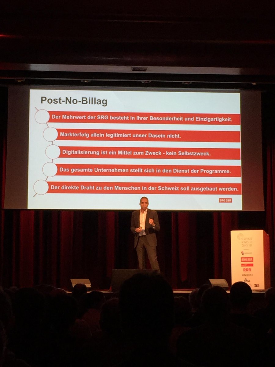 «Der Mehrwert der #SRGSSR besteht in ihrer Besonderheit und Einzigartigkeit. Markterfolg alleine legitimiert uns nicht. Digitalisierung ist Mittel zum Zweck», so @BakelWalden, GL-Mitglied der #SRGSSR, am #SwissRadioDaypic.twitter.com/ujAclpKzWL