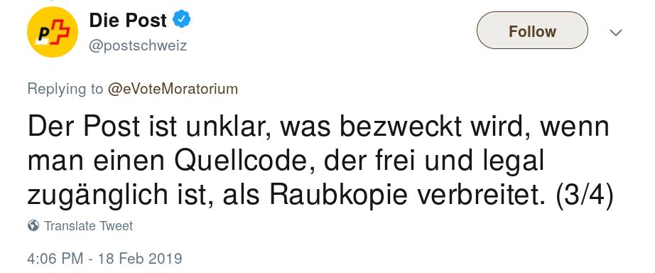 @swisspost#eVoting-sourcecode: "It’s catastrophically broken."@matthew_d_green https://twitter.com/narimoldi/status/1097402073983959042?s=21 …#postfailsNäytä tämä ketju