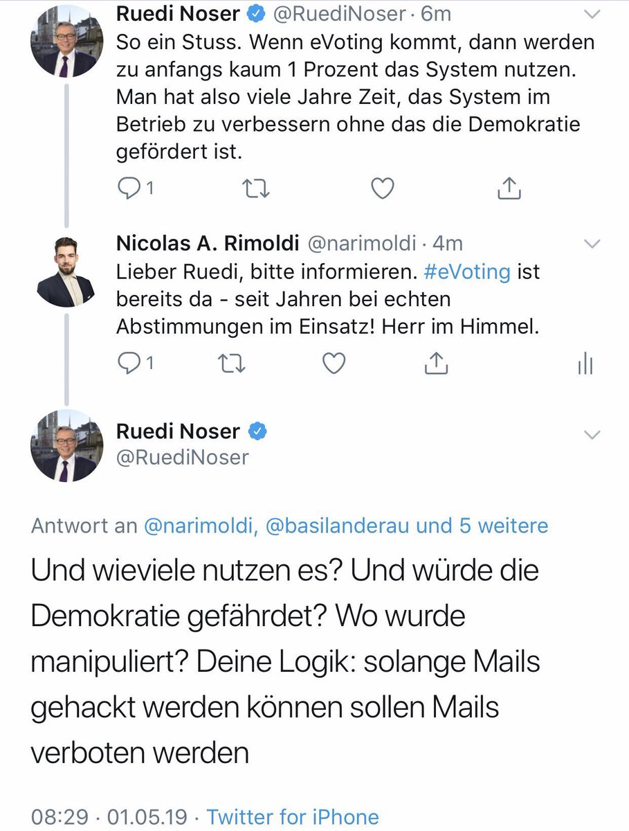 «Mister Digitalisierung» (@tagesanzeiger 9.9.19) der @FDP_Liberalen? @RuediNoser, der nicht wusste, dass #eVoting seit Jahren in Betrieb ist und dessen Sachkenntnis doch äusserst mangelhaft ist? 🤷🏻‍♂️ #DearDemocracy ▶ https://twitter.com/ale_chioc/status/1123329967130062849?s=21 …pic.twitter.com/76BrCgCwn7