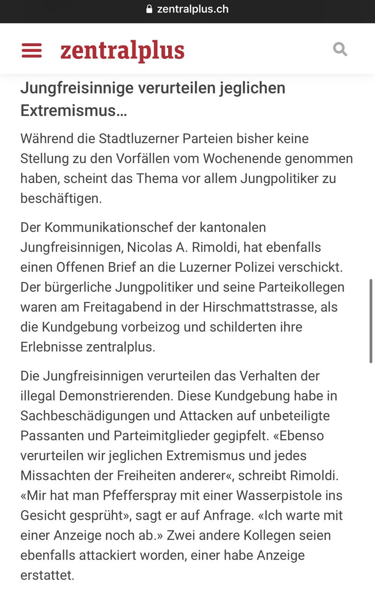 11.12.16 Schon vor drei jahren verurteilte ich jeglichen Extremismus. https://www.zentralplus.ch/nach-chaos-kundgebung-in-luzern-junge-svp-beschuldigt-junge-gruene-763311/ …pic.twitter.com/KxL1pBdDUW