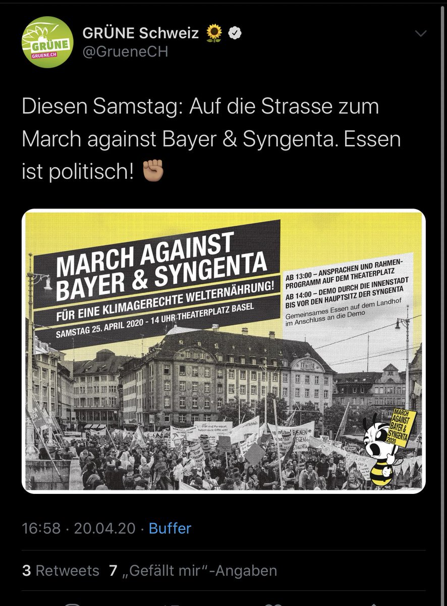 Während #covid19 und #socialdistancing zu einer Demo aufrufen?! Wie verantwortungslos kann man sein? Unwählbar! https://twitter.com/GrueneCH/status/1252250178675003394 …