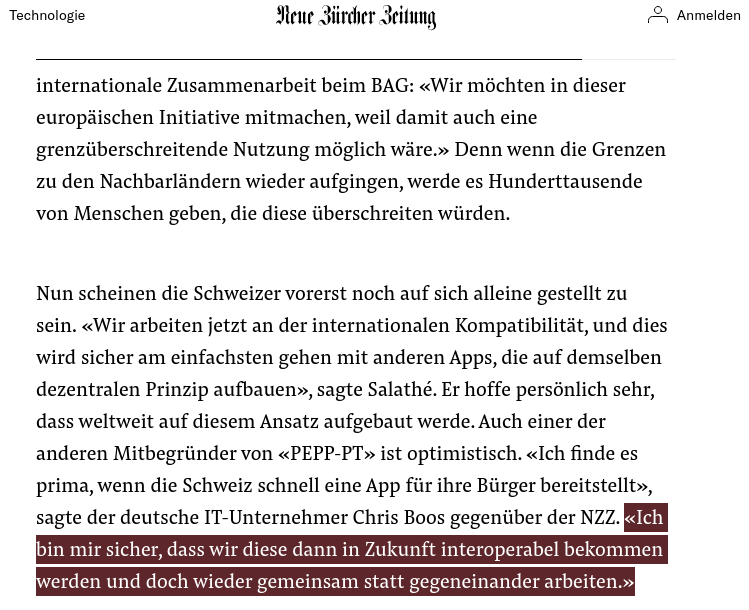 Chris Boos von @Pepppt skizziert mit der #CoronaApp-Interoperabilität, die sich auch das @BAG_OFSP_UFSP wünscht, bereits das Einfallstor, um im grenzüberschreitenden Austausch die Privacy zu senken - Nivellierung der Systeme "dezentral" zu "zentral". https://www.nzz.ch/technologie/die-contact-tracing-app-des-bag-soll-im-mai-starten-ld.1552867 …pic.twitter.com/HTqKIr6eul