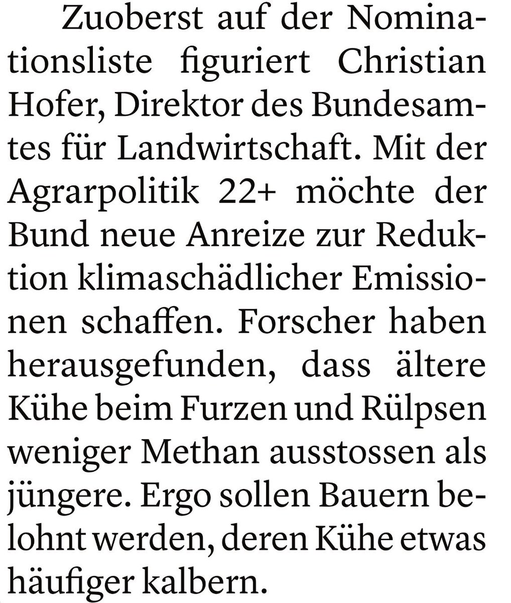 Ich bin so froh und dankbar, dass sich unser Staat um die wirklich wichtigen Dinge kümmert! Beispielsweise um furzende Kühe.