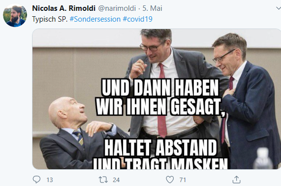Naja, Politiker, die (völlig zu Recht) Lockerungen fordern, weil sie sich auf Eigenverantwortung berufen, haben eben auch eine besondere Vorbildfunktion.