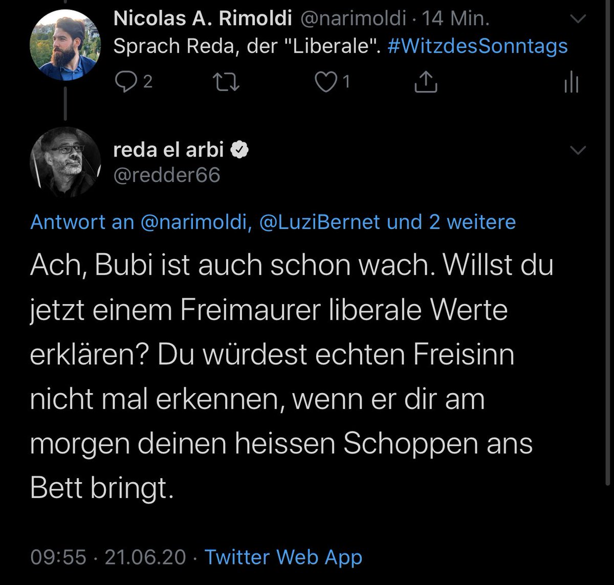 Der selbsternannte "Freimaurer" und "Liberale" ist doch sonst nicht so still wie hier. Was ist los, Reddi? *kopftätschel* @redder66 pic.twitter.com/YVuluW6UIx