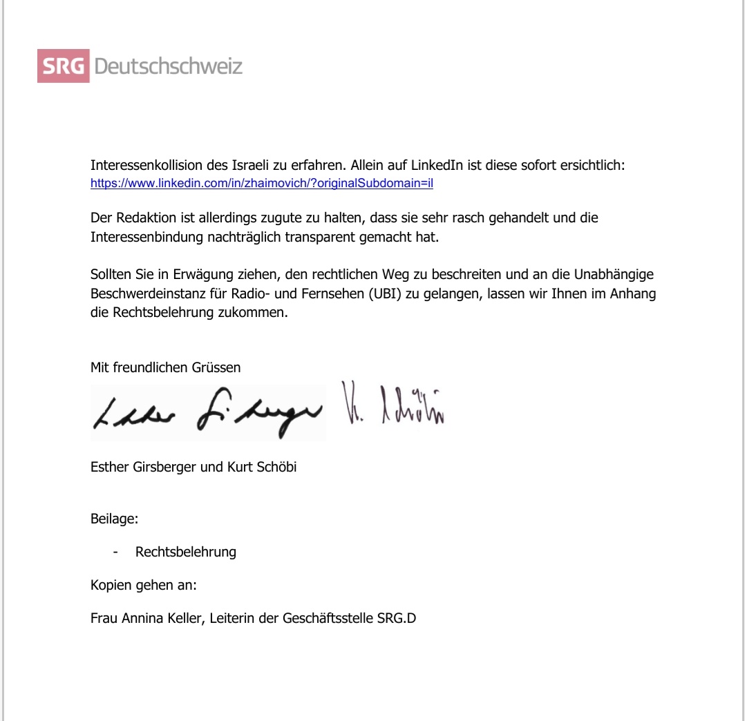 Der Fall ist klar! Die SRG Ombudsstelle hat reagiert.