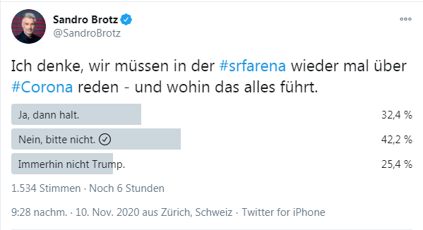 .@SandroBrotz macht morgen WIEDER eine #srfarena zum Thema Corona! Die 17te in diesem Jahr!