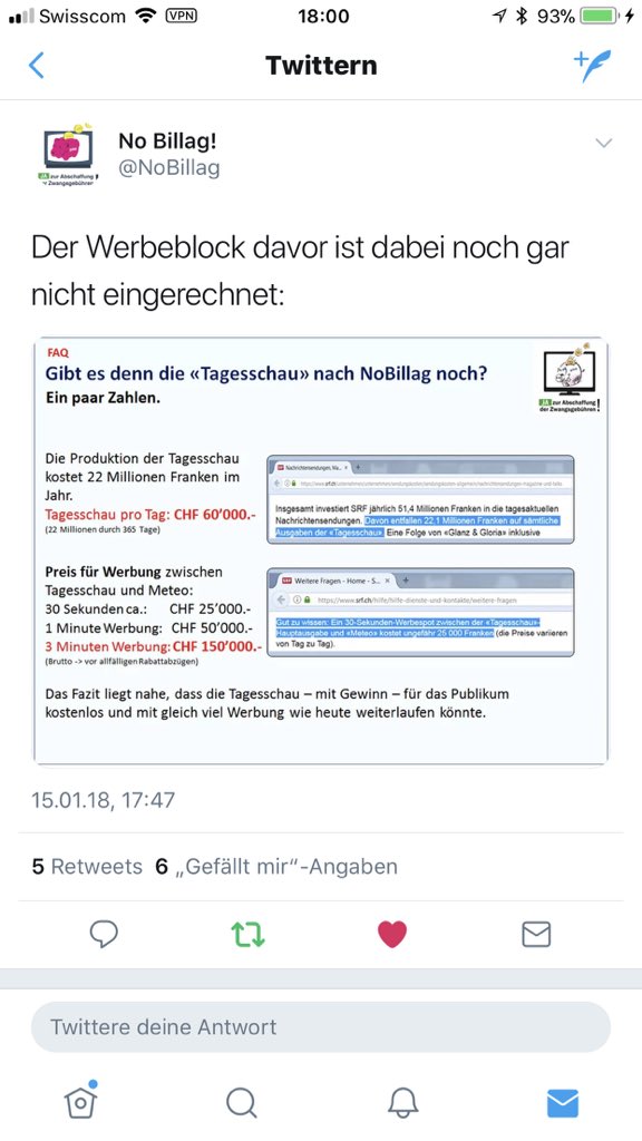 Dies ist doch wirklich auch ohne Billag möglich. Die SRG ist nicht Gralshüterin der Information in diesem Lande. Zudem:pic.twitter.com/3KzUuFNyfX