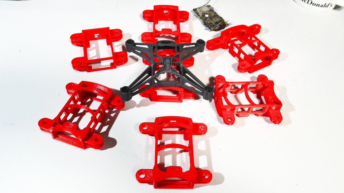 試作機7個造形しました。色々と検討した結果、7号機を使います。次の設計と造形は、モータ部のジョイントとなります。後、下記フレームに基板と電池を挿入、問題無く入りました。pic.twitter.com/v8lAHdGBvU