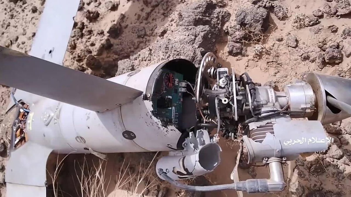 This is the wreckage of the US-made spy drone that was downed over Marib mid eastern Yemen this week. Scan Eagle .pic.twitter.com/vlrmNfL5HH