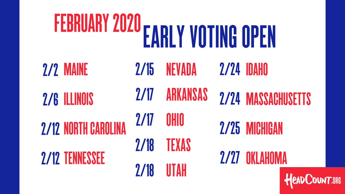 February is full of important dates and deadlines around the #PrimaryElections. Stay informed and make sure you don’t miss your chance to be heard. Visit http://HeadCount.Org for more information