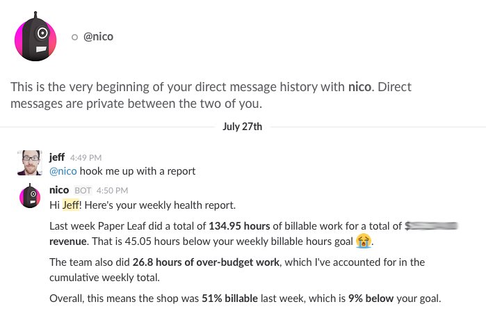 @SlackHQ bot named Nico for internal testing. He helps us check our business health when we ask:pic.twitter.com/gwG427SFqt