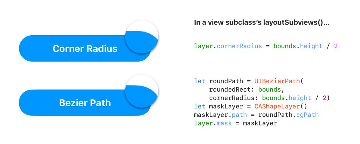 UIKit tip of the day: Use a UIBezierPath instead of a corner radius to make smoother buttons!pic.twitter.com/hyNHuUbpIc