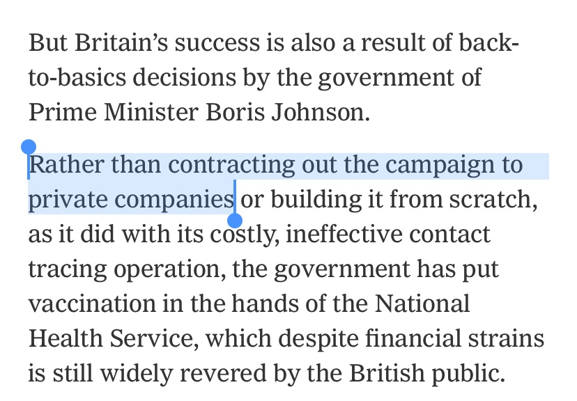 Why is the UK succeeding so well at vaccinating people? Because it has a giant socialized healthcare system which turns out to be exactly what you need to deliver services efficiently to the general public.pic.twitter.com/THfIwU5ecg