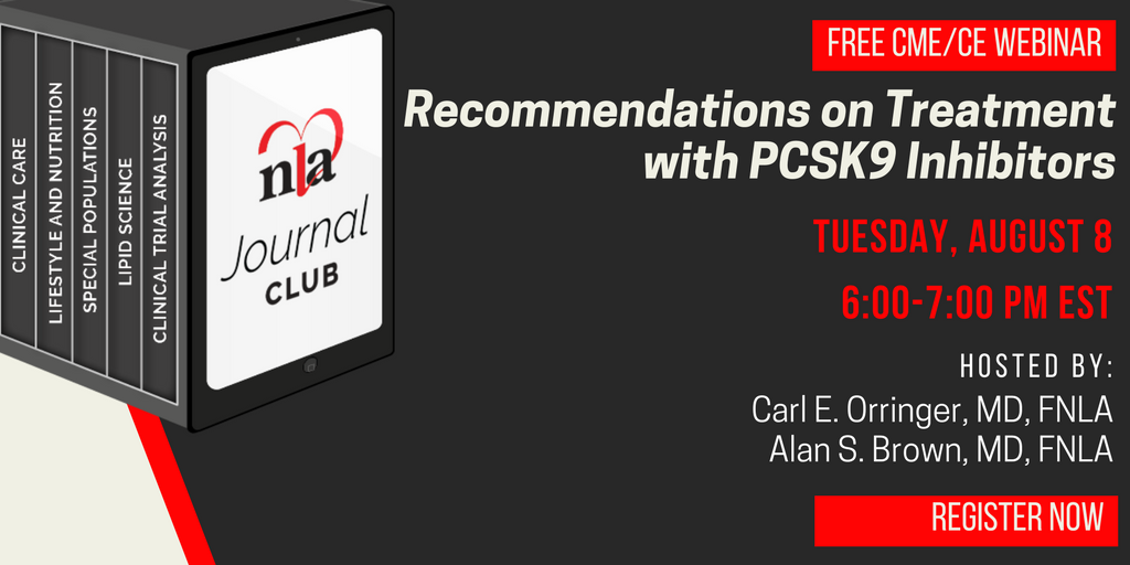 #FreeCME Aug. 8 webinar about the#NLA’s recommendations on the use of#PCSK9 inhibitors in practice. http://ow.ly/ZHoP30dC920 pic.twitter.com/Zxmy3HfflP
