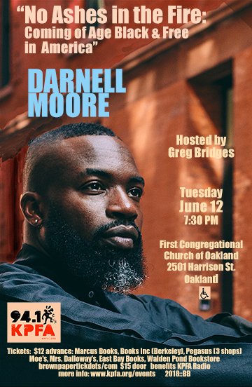 @Moore_Darnell discusses#NoAshesInTheFire tonight in#Oakland. Get your ticket now: https://kpfa.org/event/darnell-l-moore/ …pic.twitter.com/vQ4RR9gvQg