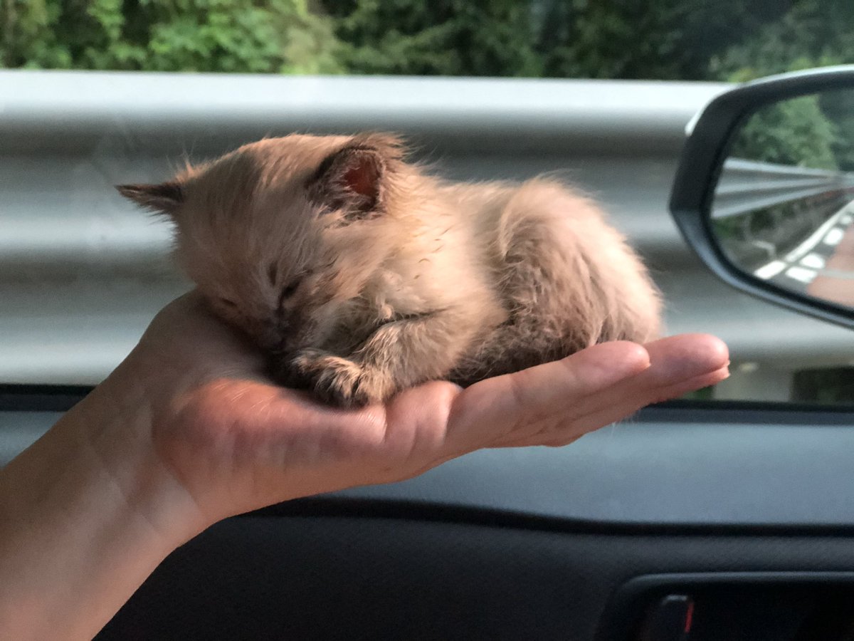日帰りで岐阜県の…忘れた! 愛知県犬山市から川を渡ったところ。そこまで保護猫ちゃんを友人が貰うというので一緒に行って来た。この猫ちゃんも岐阜から東京まで車の旅をしてきた。まだ手のひらサイズ。あと2匹決まらないのがいる。pic.twitter.com/cBXPq1Hmpp