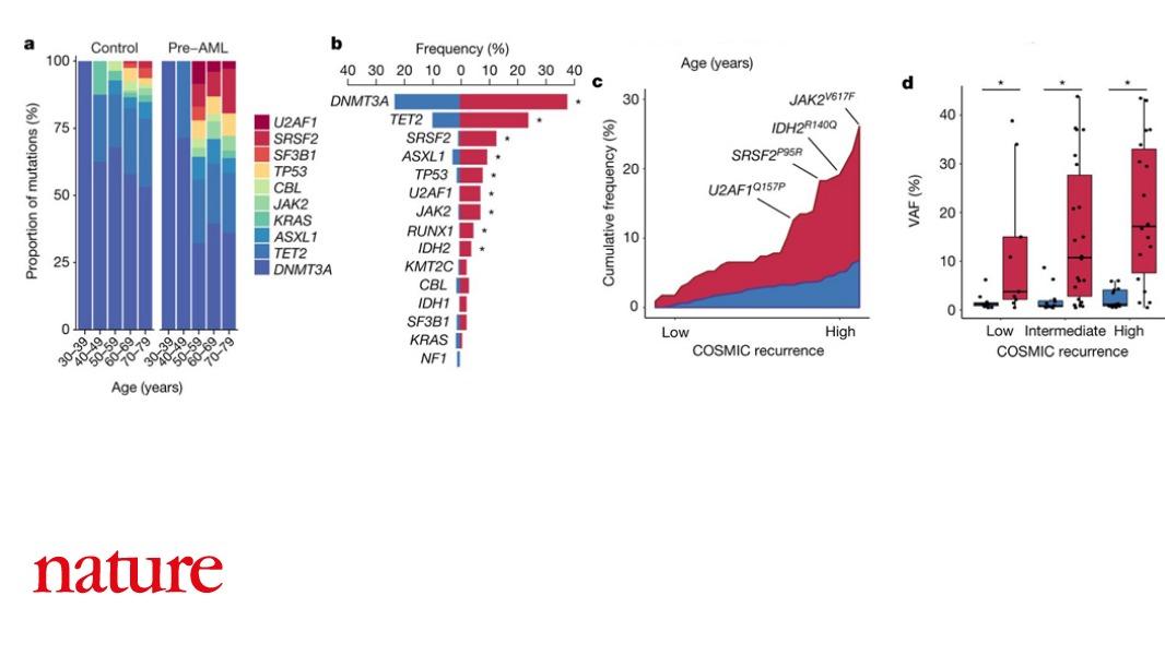 A proof-of-concept study suggests that it may be possible to detect healthy individuals at high risk of developing acute myeloid leukaemia. The paper is published in Nature https://go.nature.com/2KUhY7p pic.twitter.com/uaniHCAneq